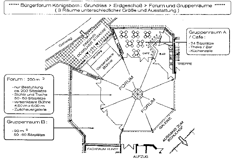 Am 31. Oktober 1997 wurde das aus Mitteln des Städtebauministeriums geförderte Bürgerforum Königsborn offiziell seiner Bestimmung übergeben. Gebaut wurde eine Begegnungs- und Kommunikationsstätte, die der Gesamtschule Königsborn und dem Stadtteil zum Versammeln, Tagen, Lernen und Feiern zur Verfügung steht.